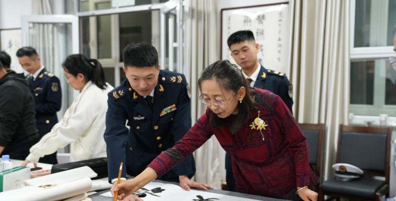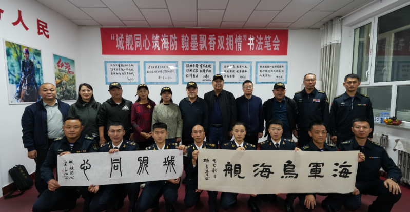 在“城舰同心驻海防 翰墨飘香双拥情”书法笔会上,乌海书协宋永江、肖海星、孙长青、张志伟、高玉珍、李玉芳等六名书法家与乌海舰官兵开展了书法文化交流,他们用“海军乌海舰”“城舰同心”“军魂”等书画作品,凝聚起乌海艺术家们与海军乌海舰的浓浓鱼水情。