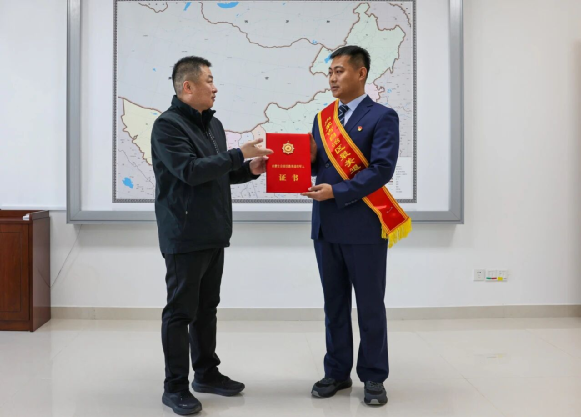 仪式上,张庆为王大军颁发了自治区“最美退役军人”荣誉证书,并向他致以热烈祝贺,