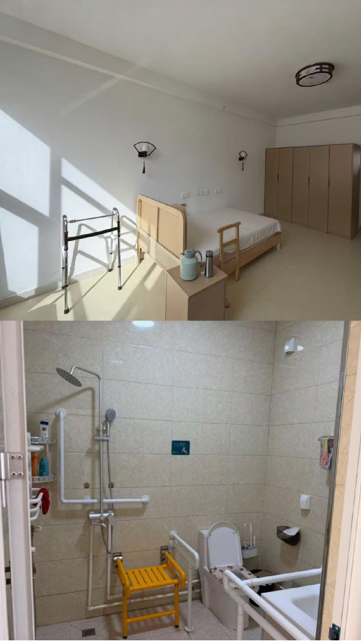 “光荣间”房间布局温馨整洁、设施齐全,配备适老化家具、呼叫装置、独立卫浴等,充分兼顾安全性与舒适度。同时,机构开放共享医疗康复、营养食堂、文娱活动室等优质资源,让优抚对象享受高品质的贴心服务。